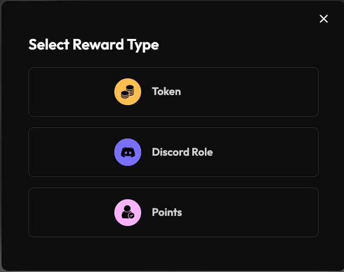 Diverse reward types are supported: Token, Discord roles, points, etc.