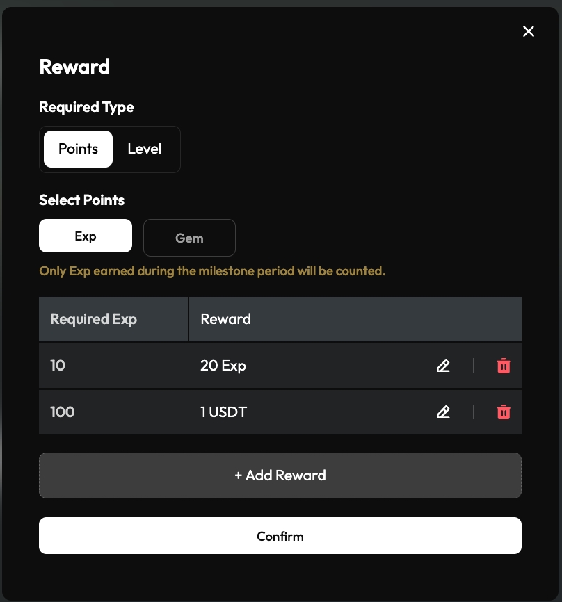 The Milestone feature, located within the Incentive Center, provides communities with a customizable user achievement system to flexibly reward core contributors. Participation conditions can be set for Milestones, enabling more precise recognition of community contributors.