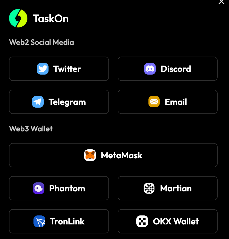 TaskOn now offers a seamless login experience through Telegram and Email, in addition to the existing options of Web3 Wallets, Twitter, and Discord. To enjoy this convenience, users can now directly log in using their Telegram or Email credentials without the need for additional steps. If you haven’t already, simply follow our tutorial to bind your Telegram and Email accounts to your TaskOn profile for a streamlined experience. Experience the ease of access and stay connected effortlessly on TaskOn — where logging in is made simple for you.