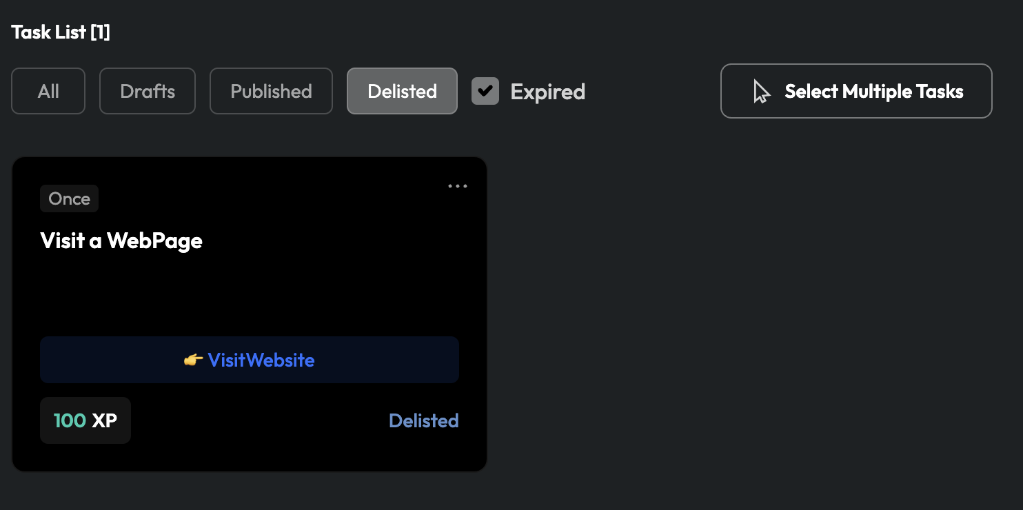 * `Delisted`: You have voluntarily taken the task offline, and users will not see it.