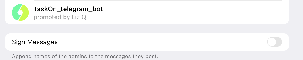 2. Add Bot as admin to your group or channel and grant the necessary permissions and access to the TaskOn Bot.